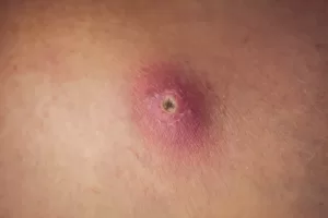 O furúnculo é uma infecção cutânea comum na infância, caracterizada por uma inflamação dolorosa da pele. Costuma aparecer em áreas do corpo com maior concentração de pelos, como axilas, pescoço, rosto, nádegas e coxas.