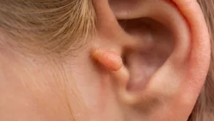 O tragus acessório é uma alteração congênita benigna, caracterizada pela presença de uma pequena protuberância ou massa de tecido localizada na região pré-auricular, ou seja, na frente da orelha. Ele ocorre devido a uma falha no desenvolvimento embrionário das estruturas auriculares, formado geralmente por pele, tecido fibroso e, ocasionalmente, cartilagem.